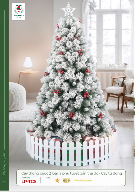CÂY THÔNG CƯỚC 2 LOẠI LÁ PHỦ TUYẾT GẮN TRÁI ĐỎ - CÂY TỰ ĐỘNG