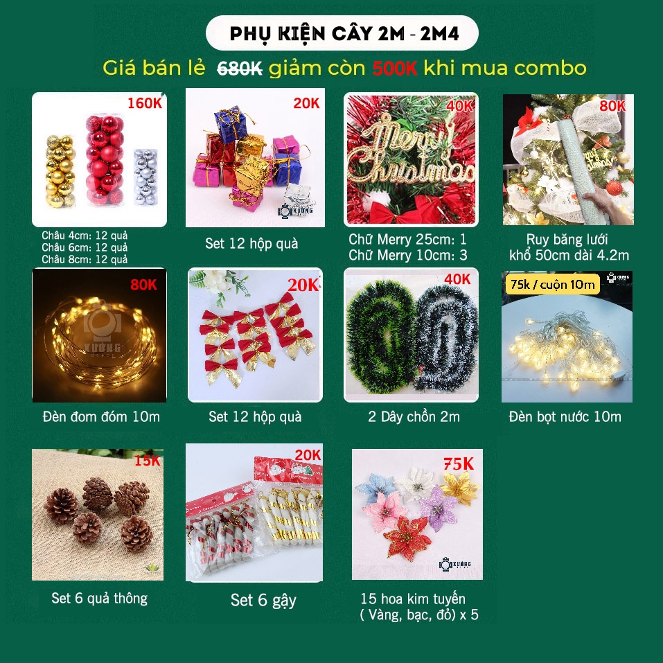 Combo full phụ kiện cây thông 2m-2m4 mới