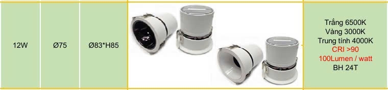 Âm trần COB chống chói lõm đen lỗ 120mm Nguồn PRI